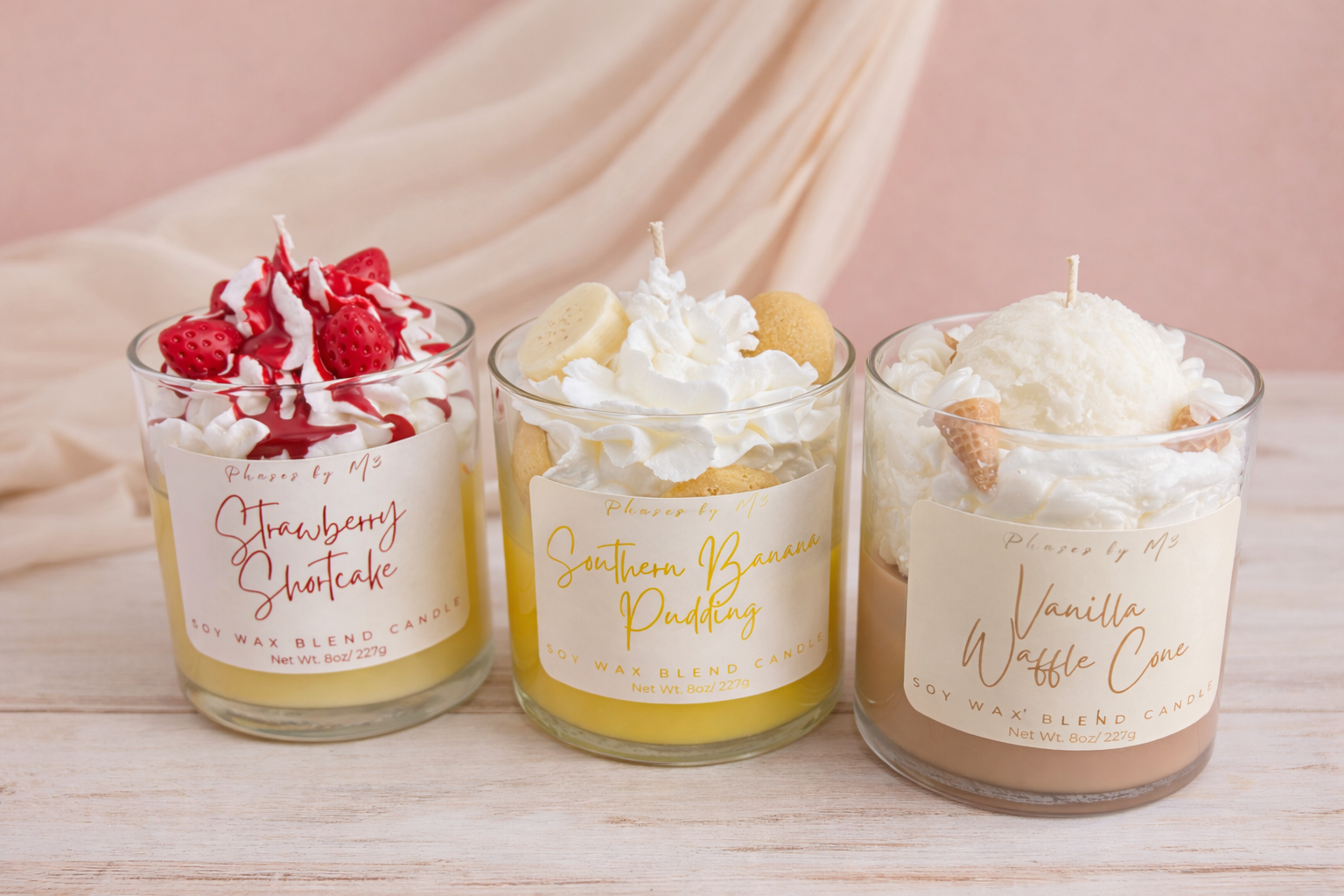 Beachside Cottage 8 oz soy candle, 16 oz soy candle, and soy wax melts